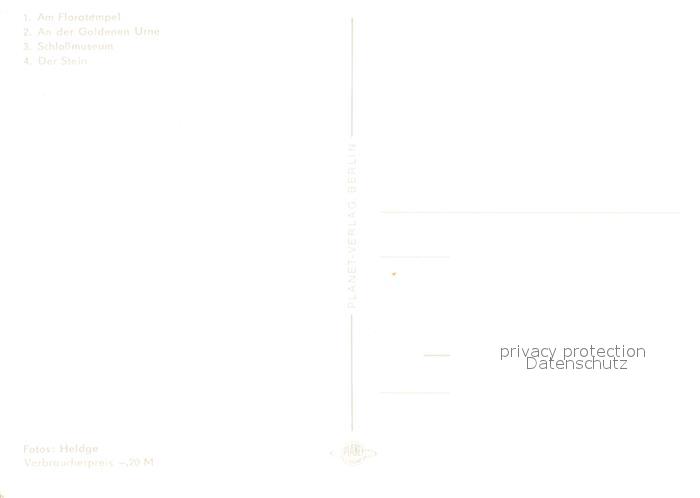 73145290 Woerlitz Am Floratempel An der Goldenen Urne Schlossmuseum Der Stein postalisch nicht gelaufen Erhaltung siehe scans [WerneD78] KatCode: 11110015091380