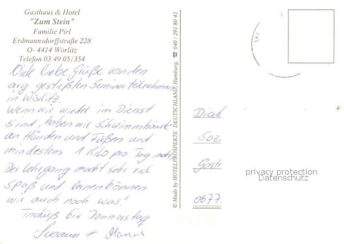 73569812 Woerlitz Gasthaus Hotel Zum Stein postalisch nicht gelaufen Erhaltung siehe scans [WerneD78] KatCode: 11110015091380