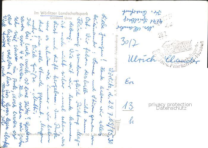 72536052 alte Postkarte Woerlitz Goldene Urne postalisch gelaufen Erhaltung siehe scans [AndreD76 kt121box] KatCode: 11110015091380
