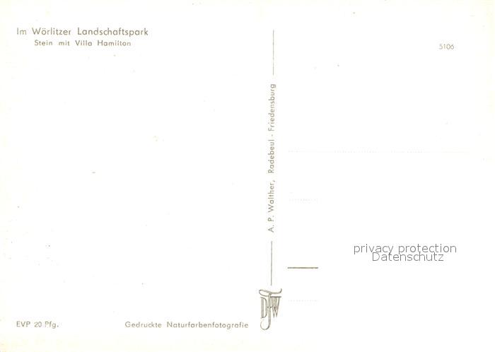 73079053 Woerlitz Landschaftspark Stein Villa Hamilton postalisch nicht gelaufen Erhaltung siehe scans [KathaD81] KatCode: 11110015091380