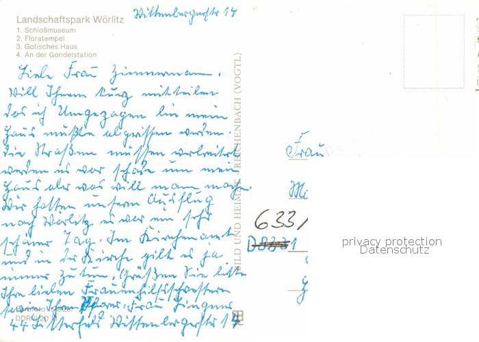 72896247 alte Postkarte Woerlitz Schlossmuseum Floratempel Gondelstation postalisch gelaufen Erhaltung siehe scans [KathaD81] KatCode: 11110015091380