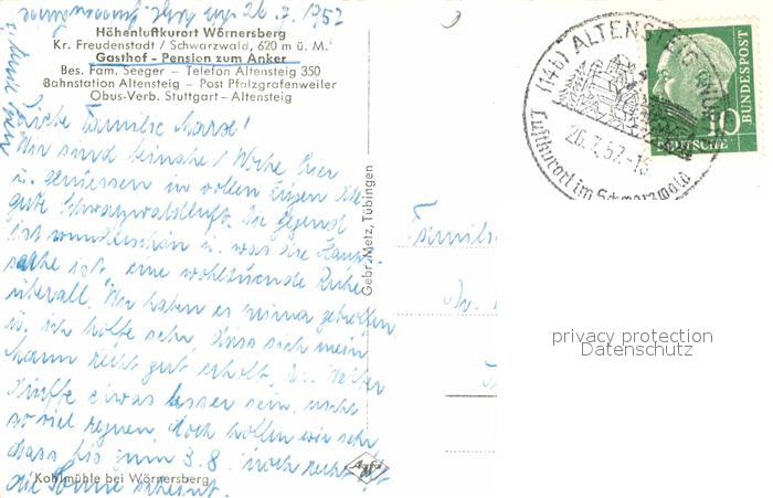 72891284 alte Postkarte Woernersberg Gasthof-Pension zum Anker postalisch gelaufen Erhaltung siehe scans [PaolaD17] KatCode: 11110008237072