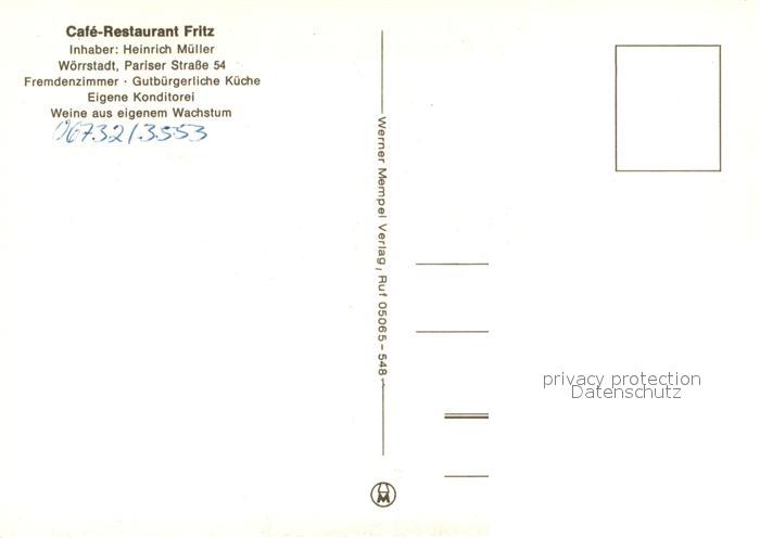 73715945 Woerrstadt Cafe Restaurant Fritz Bar Weinfaesser Gastraeume Zimmer postalisch nicht gelaufen Erhaltung siehe scans [WerneD78] KatCode: 11110007331073