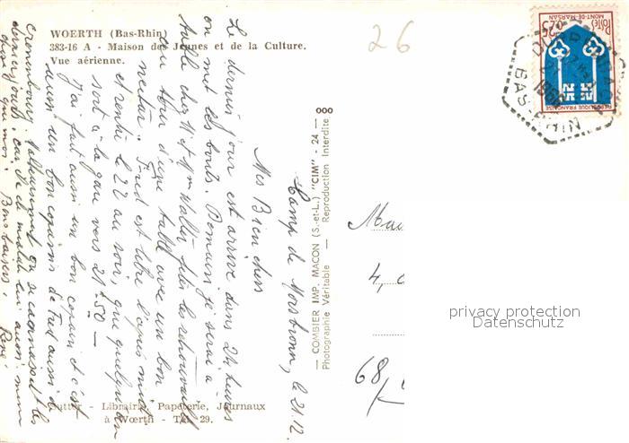 12664920 carte postale Woerth Bas Rhin Fliegeraufnahme postalisch gelaufen Erhaltung siehe scans [LiesaD40] KatCode: 11170067767550