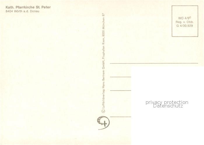 73768684 Woerth Donau Katholische Pfarrkirche St. Peter postalisch nicht gelaufen Fliegeraufnahme Erhaltung siehe scans [FriedD77] KatCode: 11110009375210