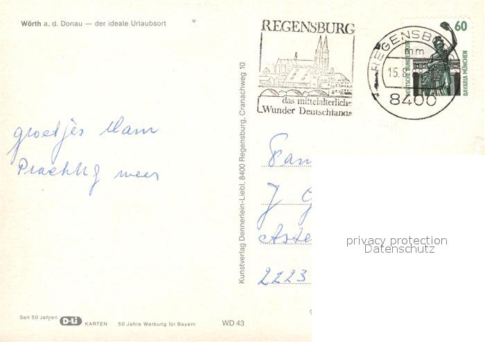73311784 alte Postkarte Woerth Donau postalisch gelaufen Erhaltung siehe scans [LiesaD40] KatCode: 11110009375210