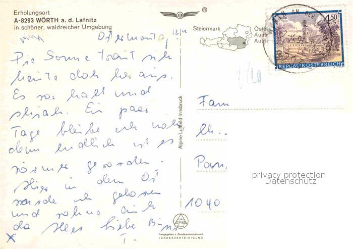 72855081 alte Postkarte Woerth Lafnitz Fliegeraufnahme postalisch gelaufen Erhaltung siehe scans [AndreD76] KatCode: 11390224060750