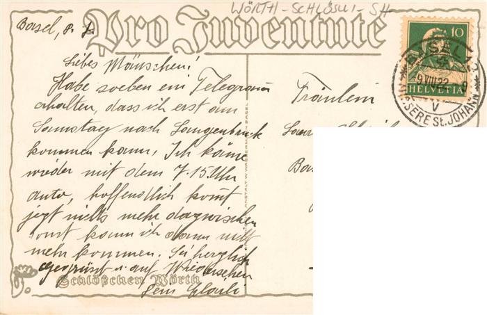 13970444 alte Postkarte Woerth Schloessli Rheinfall Neuhausen SH Rueegg Kuenstlerkarte postalisch gelaufen Erhaltung siehe scans [FriedD77] KatCode: 11470160460368