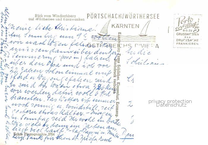 72719052 alte Postkarte Woerthersee Blick vom Windischberg auf See mit Karawanken postalisch gelaufen Erhaltung siehe scans [LiesaD40] KatCode: 11390