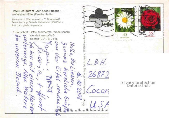 74109925 alte Postkarte Woffelsbach Eifel Simmerath NRW Hotel Zur Alten Frische postalisch gelaufen Erhaltung siehe scans [WerneD78] KatCode: 11110005354028