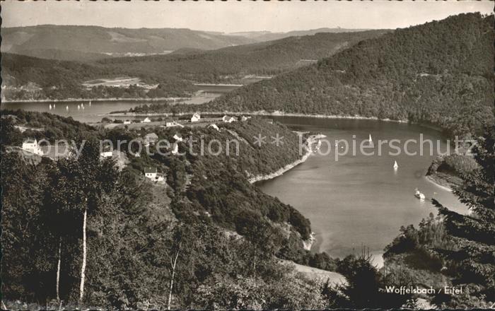 72073849 alte Postkarte Woffelsbach Panorama Rursee Eifel Segeln postalisch gelaufen Erhaltung siehe scans KatCode: 11110005354028