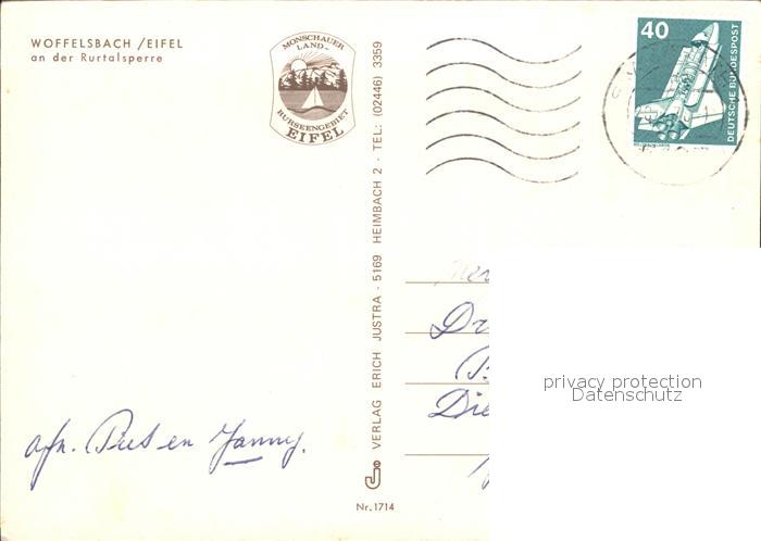 72255287 alte Postkarte Woffelsbach Rurtalsperre postalisch gelaufen Erhaltung siehe scans KatCode: 11110005354028