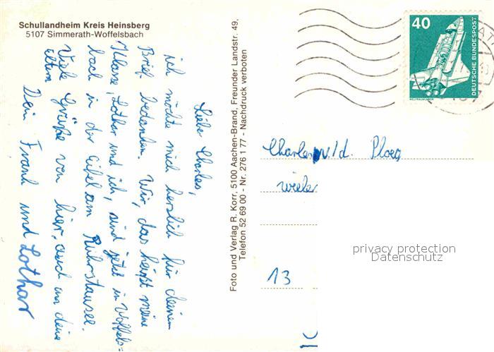 72785865 alte Postkarte Woffelsbach Schullandheim Heinsberg Teilansichten postalisch gelaufen Erhaltung siehe scans [WerneD78] KatCode: 11110005354028