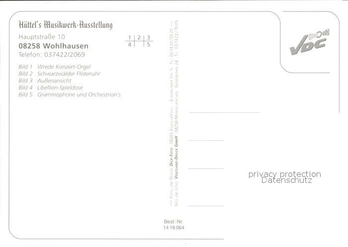 72323857 Wohlhausen Markneukirchen Huettels Musikwerk-Ausstellung postalisch nicht gelaufen Erhaltung siehe scans KatCode: 11110014178330