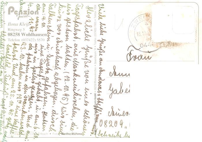 73878857 alte Postkarte Wohlhausen Markneukirchen Pension Jacob Gaststube Pool postalisch gelaufen Erhaltung siehe scans [WerneD78] KatCode: 11110014178330