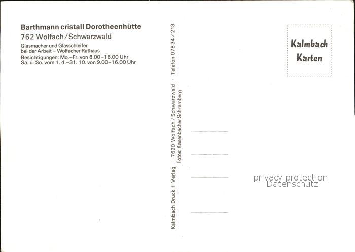 72296788 Wolfach Barthmann cristall Dorotheenhuette Glasmacher Glasschleifer Handwerk Rathaus postalisch nicht gelaufen Erhaltung siehe scans KatCode: 11110008317145