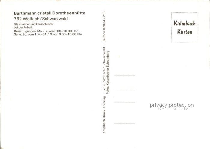 72599488 Wolfach Barthmann Cristall Dorotheenhuette Glasmacher und Glasschleifer postalisch nicht gelaufen Erhaltung siehe scans [LiesaD40] KatCode: 11110008317145