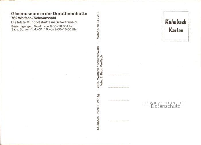 72599489 Wolfach Barthmann Cristall Dorotheenhuette Glasmuseum postalisch nicht gelaufen Erhaltung siehe scans [LiesaD40] KatCode: 11110008317145