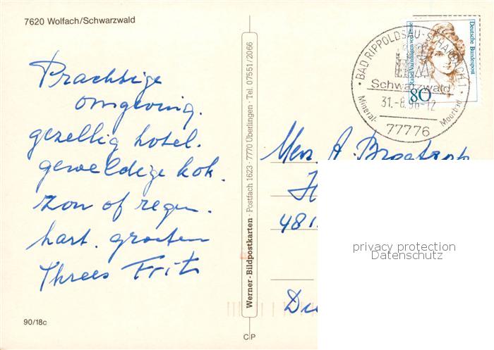 73814079 alte Postkarte Wolfach Brueckendenkmal postalisch gelaufen Erhaltung siehe scans [FriedD77] KatCode: 11110008317145