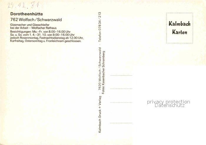 72824276 Wolfach Dorotheenhuette Glasmacher Glasschleifer Handwerk postalisch nicht gelaufen Erhaltung siehe scans [FriedD77] KatCode: 11110008317145