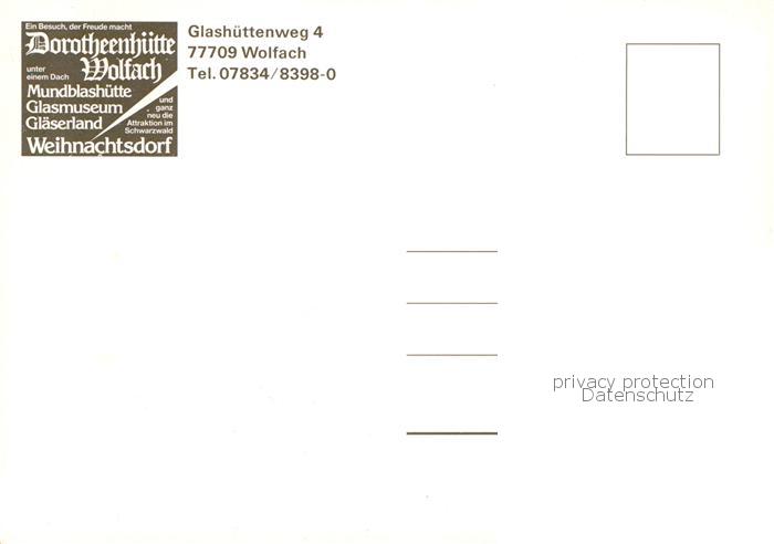 73838192 Wolfach Dorotheenhuette Wolfach Mundblashuette Weihnachtsdorf Glaeserland postalisch nicht gelaufen Erhaltung siehe scans [WerneD78] KatCode: 11110008317145