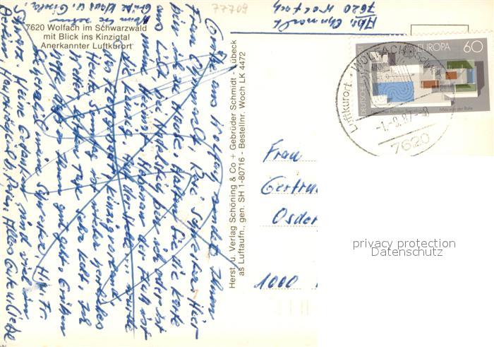 73643746 alte Postkarte Wolfach Fliegeraufnahme mit Kinzigtal postalisch gelaufen Erhaltung siehe scans [WerneD78] KatCode: 11110008317145