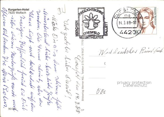 alte Postkarte Wolfach Kurgarten Hotel postalisch gelaufen Erhaltung siehe scans