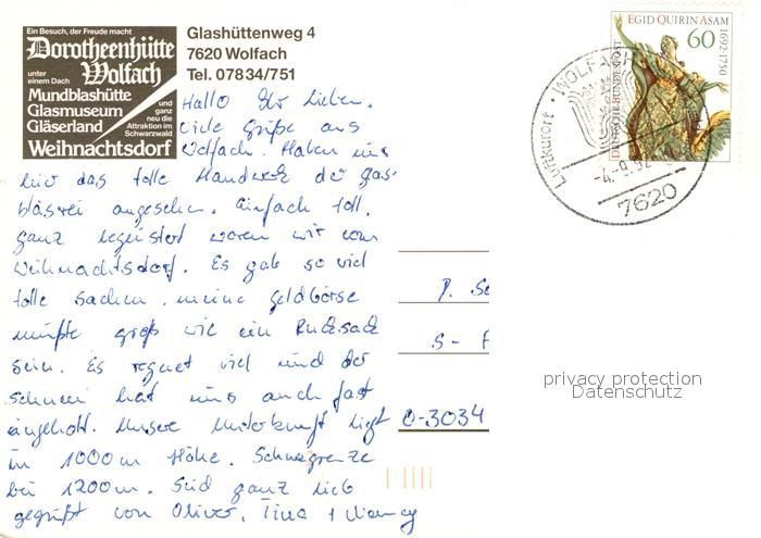73158123 alte Postkarte Wolfach Mundblashuette Weihnachtsdorf Glaeserland postalisch gelaufen Erhaltung siehe scans [WerneD78] KatCode: 11110008317145