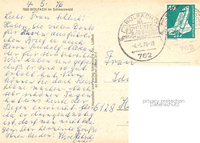 73122164 alte Postkarte Wolfach Ortsansicht postalisch gelaufen Erhaltung siehe scans [KathaD81] KatCode: 11110008317145