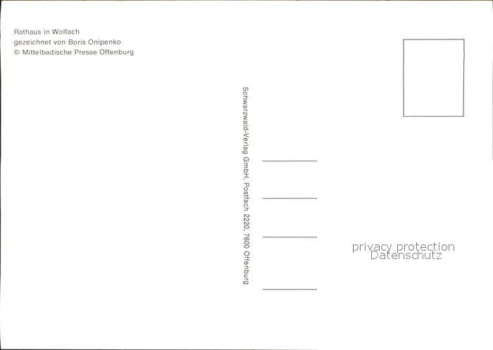 71830774 Wolfach Rathaus Zeichnung Boris Onipenko postalisch nicht gelaufen Erhaltung siehe scans KatCode: 11110008317145