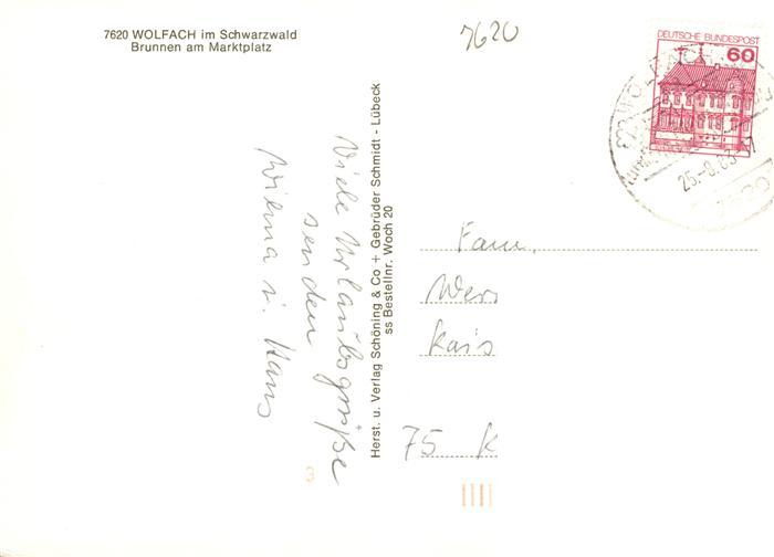 73930828 alte Postkarte Wolfach Schwarzwald Brunnen am Marktplatz postalisch gelaufen Erhaltung siehe scans [FriedD77] KatCode: 11110008317145