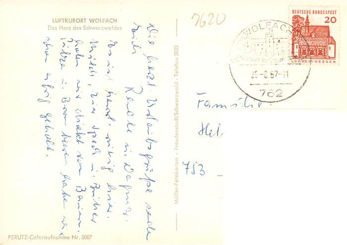 73936972 alte Postkarte Wolfach Schwarzwald Fliegeraufnahme postalisch gelaufen Erhaltung siehe scans [WerneD78] KatCode: 11110008317145