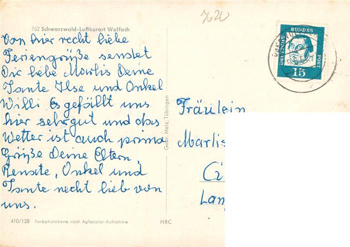 73932027 alte Postkarte Wolfach Schwarzwald Fliegeraufnahme postalisch gelaufen Erhaltung siehe scans [WerneD78] KatCode: 11110008317145