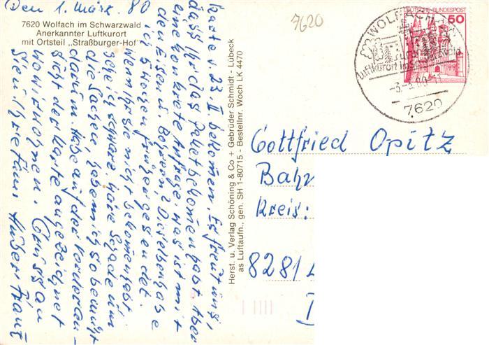 73931277 alte Postkarte Wolfach Schwarzwald Fliegeraufnahme mit OT Strassburger Hof postalisch gelaufen Erhaltung siehe scans [FriedD77] KatCode: 11110008317145
