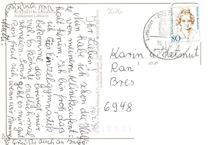 73930824 alte Postkarte Wolfach Schwarzwald Fliegeraufnahme Volutengiebel Marktplatz postalisch gelaufen Erhaltung siehe scans [FriedD77] KatCode: 11110008317145