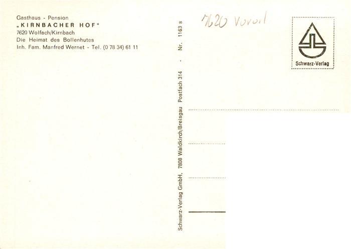 73930440 Wolfach Schwarzwald Gasthaus Pension Kirnbacher Hof Trachten Bollenhut postalisch nicht gelaufen Erhaltung siehe scans [FriedD77] KatCode: 11110008317145