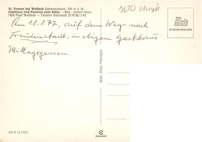 73931091 Wolfach Schwarzwald Gasthaus Pension zum Adler postalisch nicht gelaufen Erhaltung siehe scans [FriedD77] KatCode: 11110008317145