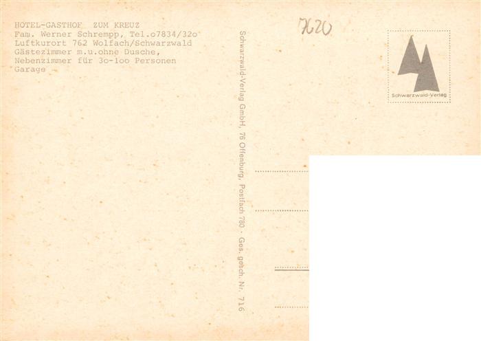 73930822 Wolfach Schwarzwald Hotel Gasthaus Kreuz Pension Marktbrunnen postalisch nicht gelaufen Erhaltung siehe scans [FriedD77] KatCode: 11110008317145