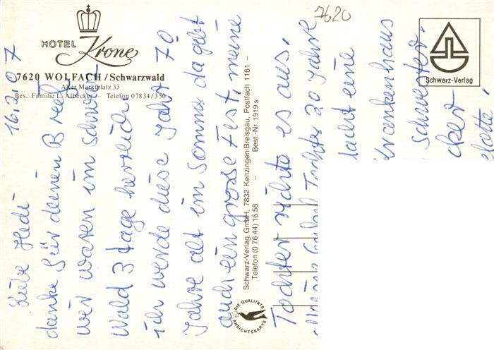 73931100 Wolfach Schwarzwald Hotel Krone postalisch nicht gelaufen Erhaltung siehe scans [FriedD77] KatCode: 11110008317145