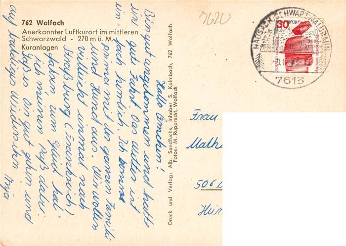 73932019 alte Postkarte Wolfach Schwarzwald Kuranlagen Kirche Park postalisch gelaufen Erhaltung siehe scans [WerneD78] KatCode: 11110008317145