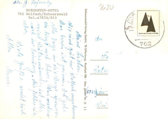 73932020 alte Postkarte Wolfach Schwarzwald Kurgarten Hotel postalisch gelaufen Erhaltung siehe scans [WerneD78] KatCode: 11110008317145