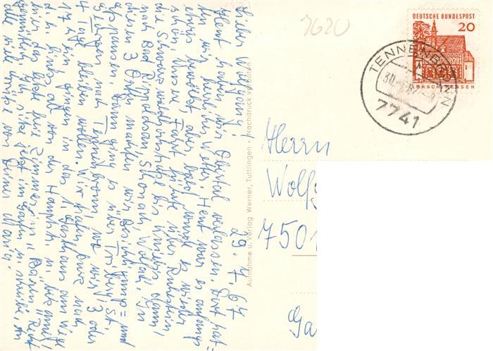 73930446 alte Postkarte Wolfach Schwarzwald Motive Ortszentrum Fachwerkhaeuser Kirche Konzertpavillon Partie an der Kinzig Panorama Luftkurort im Schwarzwald postalisch gelaufen Erhaltung siehe scans [FriedD77] KatCode: 11110008317145