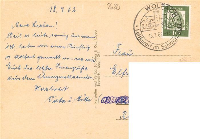 73931098 alte Postkarte Wolfach Schwarzwald Panorama Kinzigpartie Schloss Brunnen postalisch gelaufen Erhaltung siehe scans [FriedD77] KatCode: 11110008317145