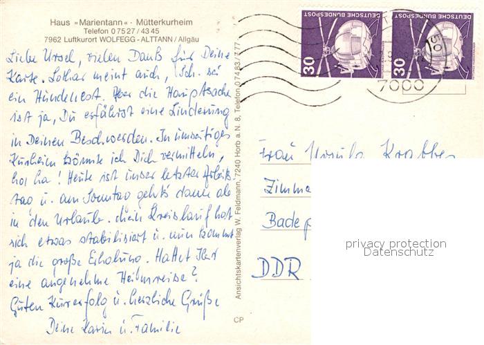 72987525 alte Postkarte Wolfegg Haus Marientann Muetterkurheim postalisch gelaufen Erhaltung siehe scans [LiesaD40] KatCode: 11110008436085