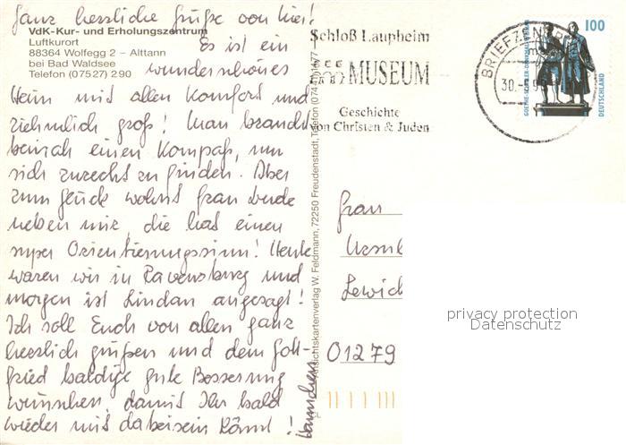 73652534 alte Postkarte Wolfegg VdK Kur und Erholungszentrum Garten Terrasse postalisch gelaufen Erhaltung siehe scans [WerneD78] KatCode: 11110008436085