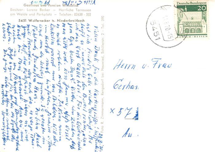 73876764 alte Postkarte Wolfenacker Gasthaus und Pension Wiedblick Gaststaette Wiedbachtal Panorama postalisch gelaufen Erhaltung siehe scans [FriedD77] KatCode: 11110007138047