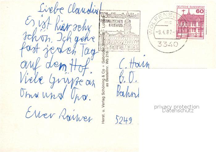 73118064 alte Postkarte Wolfenbuettel Denkmal postalisch gelaufen Erhaltung siehe scans [NatalD47] KatCode: 11110003158037