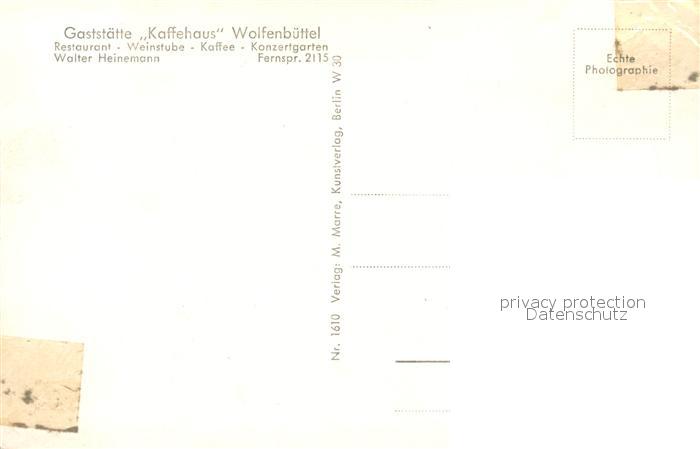 33084698 Wolfenbuettel Kaffeehaus Restaurant postalisch nicht gelaufen Erhaltung siehe scans [LiesaD40] KatCode: 11110003158037