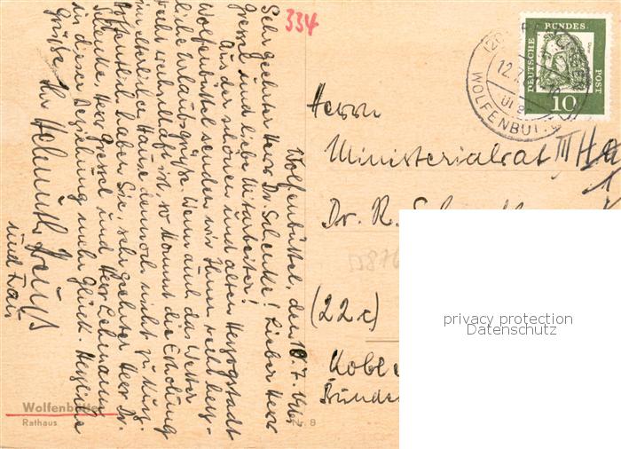 73787986 alte Postkarte Wolfenbuettel Rathaus Brunnen postalisch gelaufen Erhaltung siehe scans [FriedD77] KatCode: 11110003158037