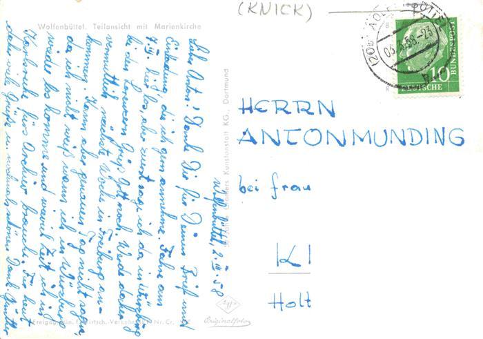 73972659 alte Postkarte WOLFENBueTTEL Teilansicht mit Marienkirche postalisch gelaufen Fliegeraufnahme Erhaltung siehe scans [FriedD77] KatCode: 11110003158037